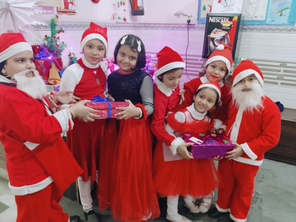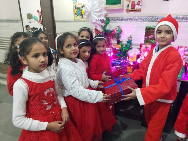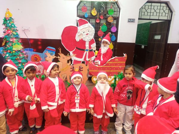 Excitement reverberated in the air as the festival of joy and giving was celebrated with great spirit in the Pre Primary Wing on 24 December 2024. On this occasion, great efforts were taken by the teachers to decorate the Pre Primary Wing in Christmas theme. A pleasant and happy atmosphere was created with cheerful Christmas carols and party songs. The delightful celebration included students coming in red and white colour party dress, bringing their favourite food and snacks in the lunch, dancing and sharing the merriment together. The students were told about Lord Jesus Christ and Santa Claus. Overall, it was a celebration filled with the happiness and joy of sharing.