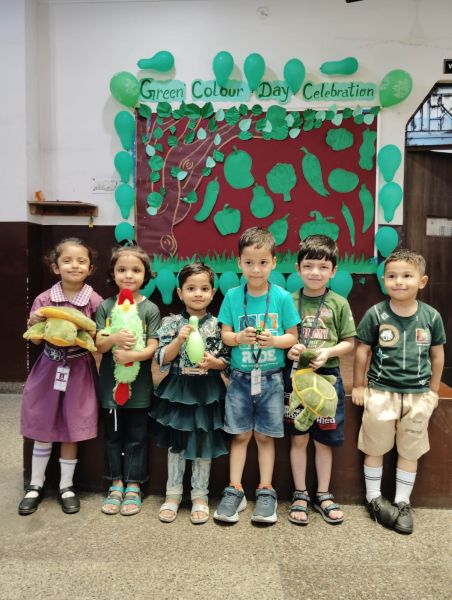 The Colour Green which represents prosperity was celebrated with great zeal and enthusiasm in the Pre-primary Wing of David School on 30th April 2025. The students and teachers came to school dressed in pretty green attires and looked eco-friendly. Pre-primary Wing was beautifully decorated in green theme and all the green objects from a student's immediate surroundings were brought to the classrooms. Students were taught the identification and recognition of green fruits, vegetables, leaves and trees. It also prompted them to think how green colour energizes and revitalizes our lives. Students brought green snacks and eatables in their tiffin. It was indeed an invigorating, reviving and rejuvenating experience….!!