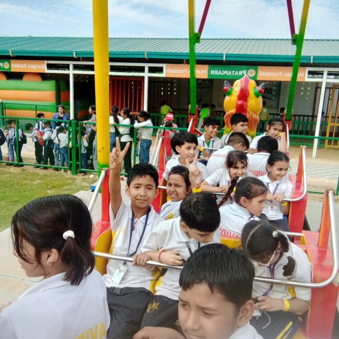 A Day of Joy and Adventure: Classes III-V Explore Pratapgarh Farms" On October 16, 2024, the Primary Wing students from Classes III-V enjoyed an exciting day at Pratapgarh Farms, Haryana. The picnic offered a perfect blend of fun, learning, and personal growth, fostering teamwork, creativity, and a stronger connection with nature.