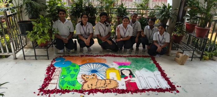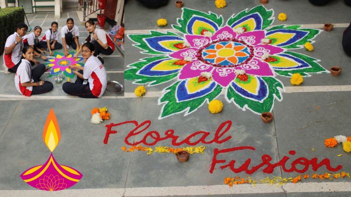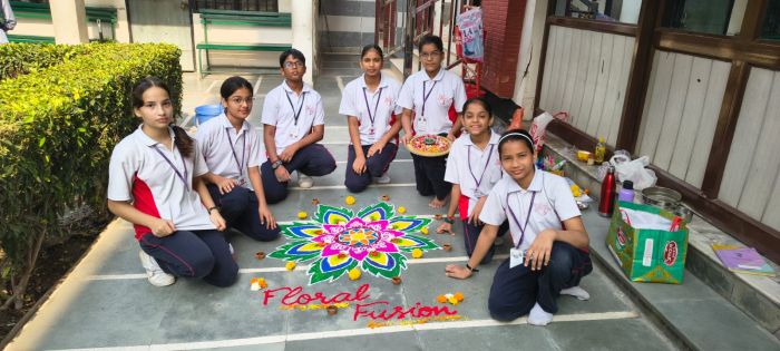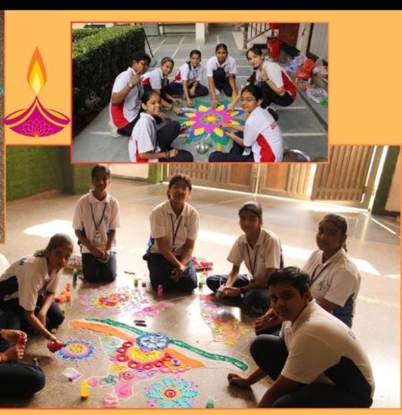 Students from each house participated actively, showcasing their artistic skills through beautiful and colorful rangoli designs made using flowers, colored powders, and diyas. The themes selected by the houses reflected values like Vibrant India, Floral Fusion, Incredible India & Peace and Harmony.