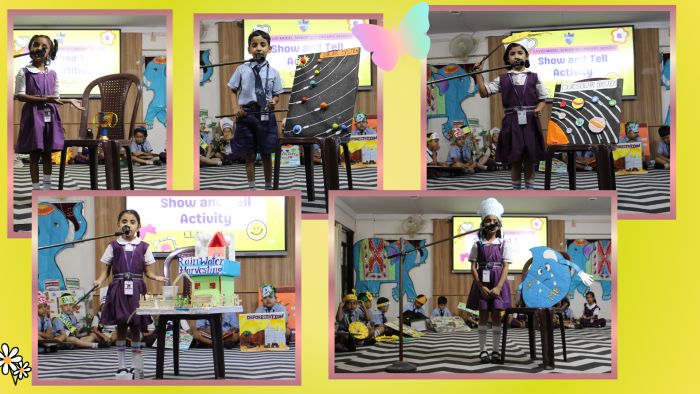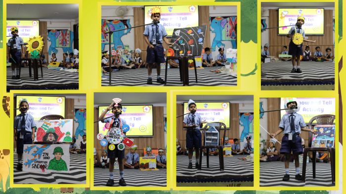 In a delightful display of young talent, the students of classes I and II participated in an engaging “Show and Tell” activity on 27th and 28th August 2025 respectively. This activity not only showcased their enthusiasm but also proved to be an excellent platform for enhancing their speaking and presentation abilities. Students participated with a variety of objects and themes such as AI, Rain Water Harvesting, Operation Sindoor, Globe, Deforestation, Nation, Healthy Food, Volcano eruption etc. and spoke with a lot of confidence, facial expressions and voice modulations. The inspiring presentations left no stone unturned to achieve a realistic appraisal of their skills and discover the power of spoken words. Students participated in this Show and Tell activity with full of energy and spirit. The event was a celebration of their progress in communication skills as well as an opportunity for experiential learning.