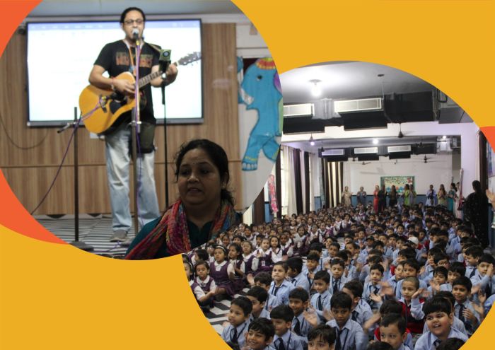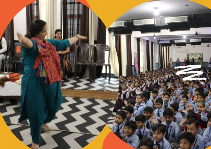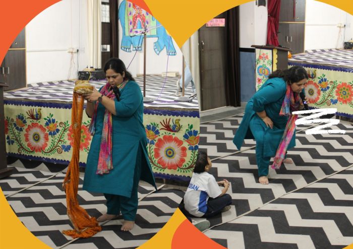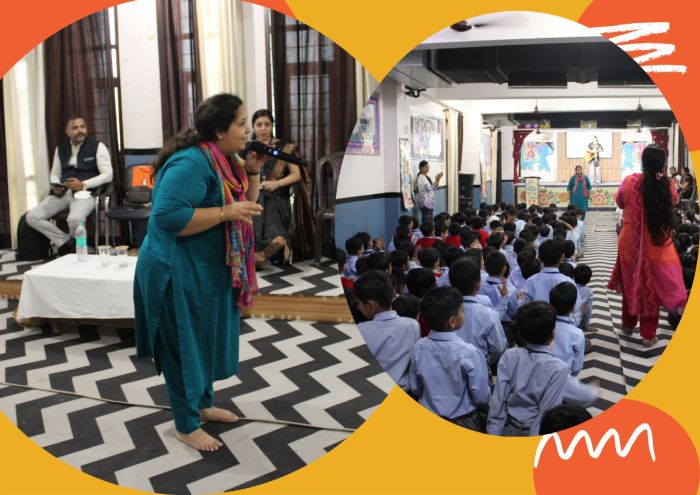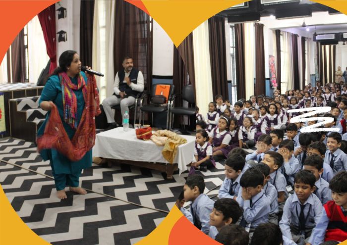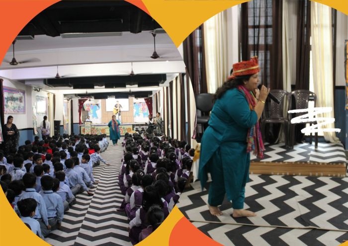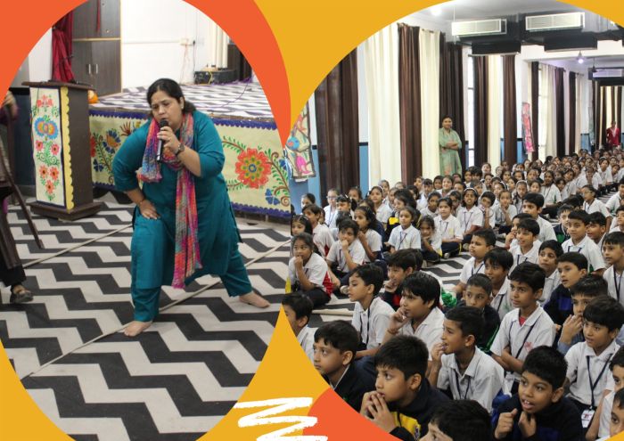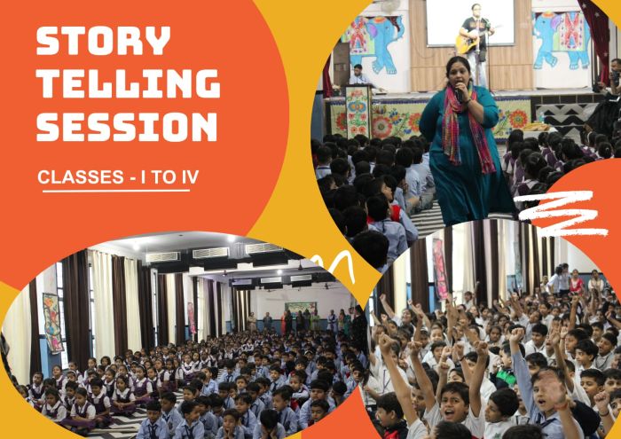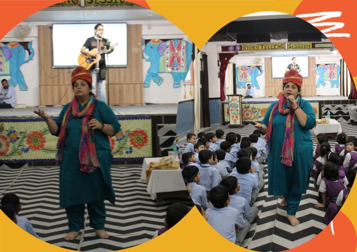 The session was divided into two groups: Classes I & II and Classes III & IV. Each story session featured two stories for each group and the session was carried over by Ms. Vasudha Ahuja with live music and interactive props. The students actively participated and enjoyed the session.