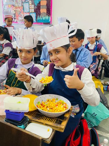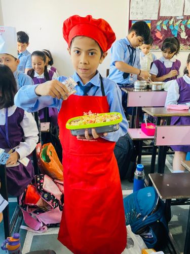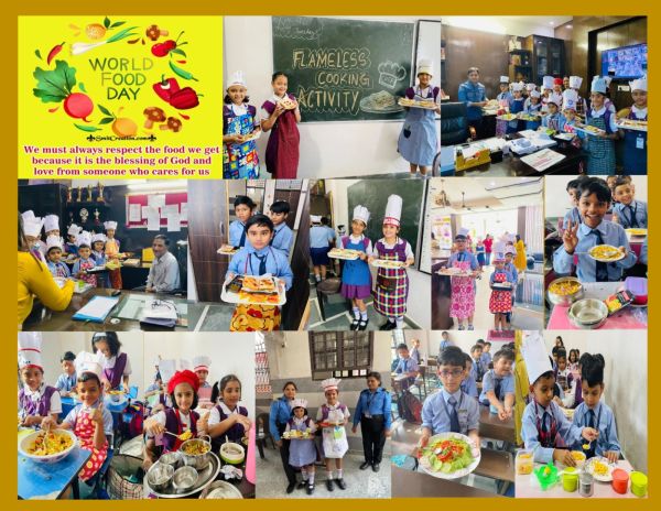 The Primary Wing of the school organized a Flameless Cooking Activity on October 16, 2025, to spread awareness about food and celebrate World Food Day. World Food Day is celebrated globally on October 16 every year to highlight the importance of food security and promote healthy and sustainable eating habits. It reminds everyone to appreciate the value of food and work towards a world free from hunger.
